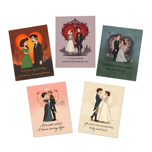 Classic Literary Romance Valentine Cards - Set of 5
