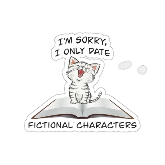 Cute tabby cat on a book sticker - Gift For Book Lover - Animal Lover - Im Sorry I Only Date Fictional Characters - cat lover - dating scene