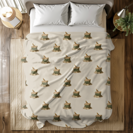 Book Lovers Soft Comfy Blanket - Books Stack with Moth Design