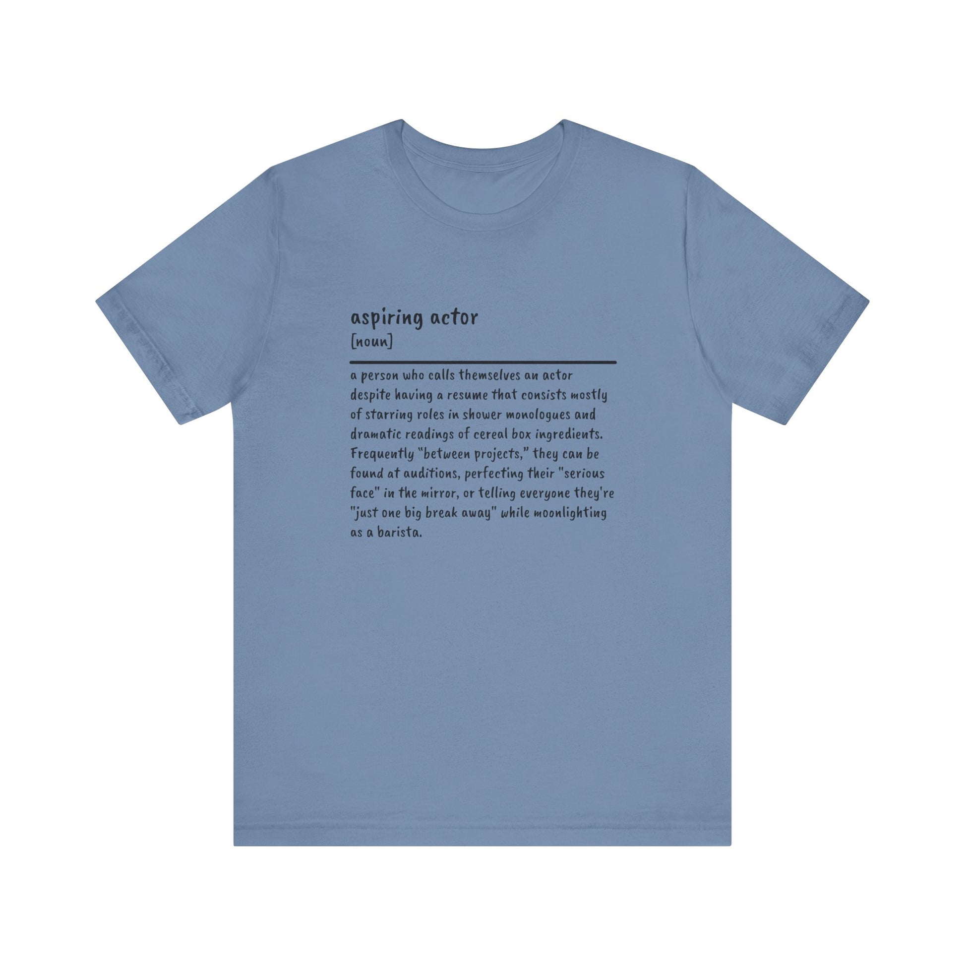 Chasing the dream, one audition at a time! This hilarious dictionary-style t-shirt defines “aspiring actor” with a perfect mix of humor and truth—highlighting the hustle, ramen-filled nights, and big dreams. Ideal for actors, theater lovers, or anyone who knows the struggle of living the spotlight life!