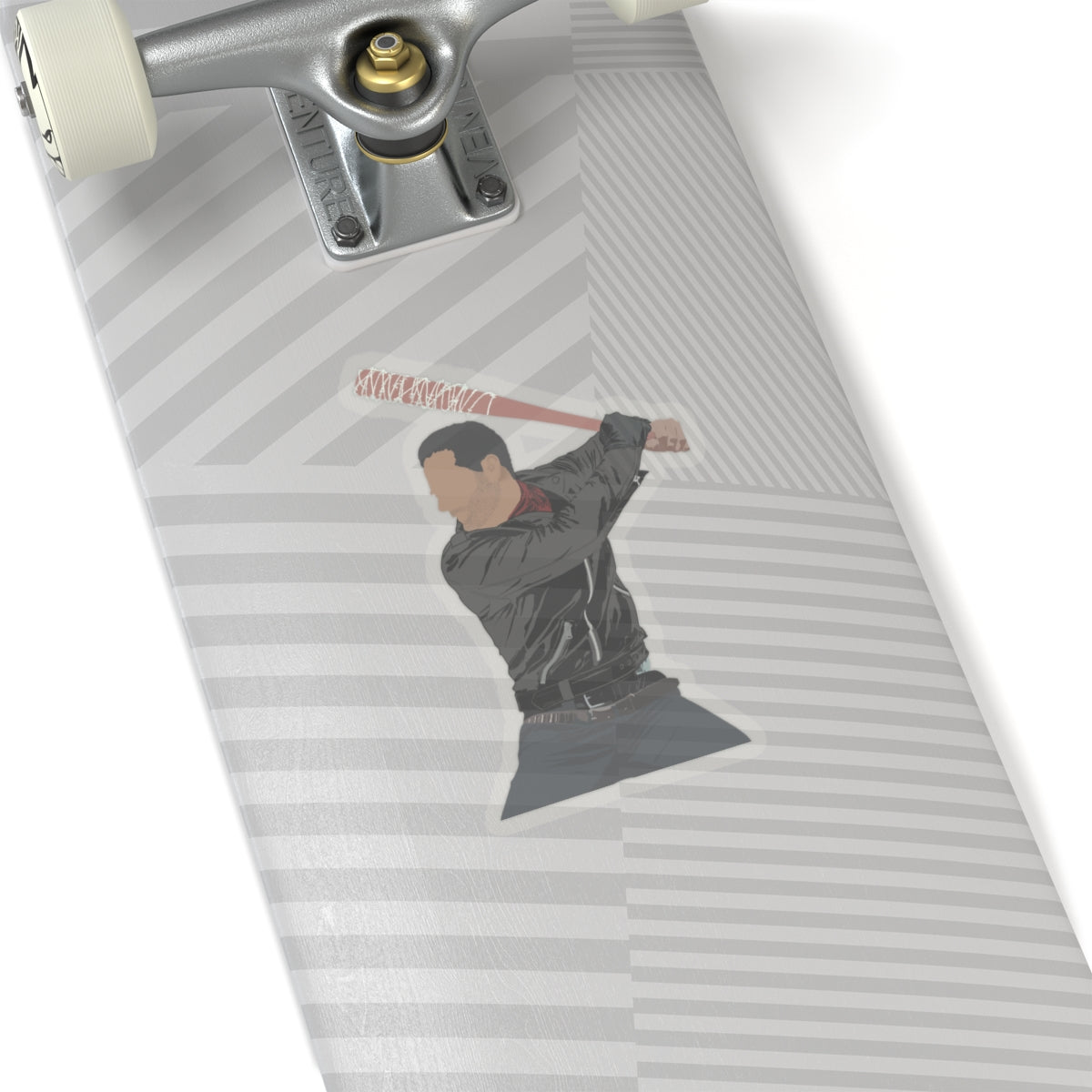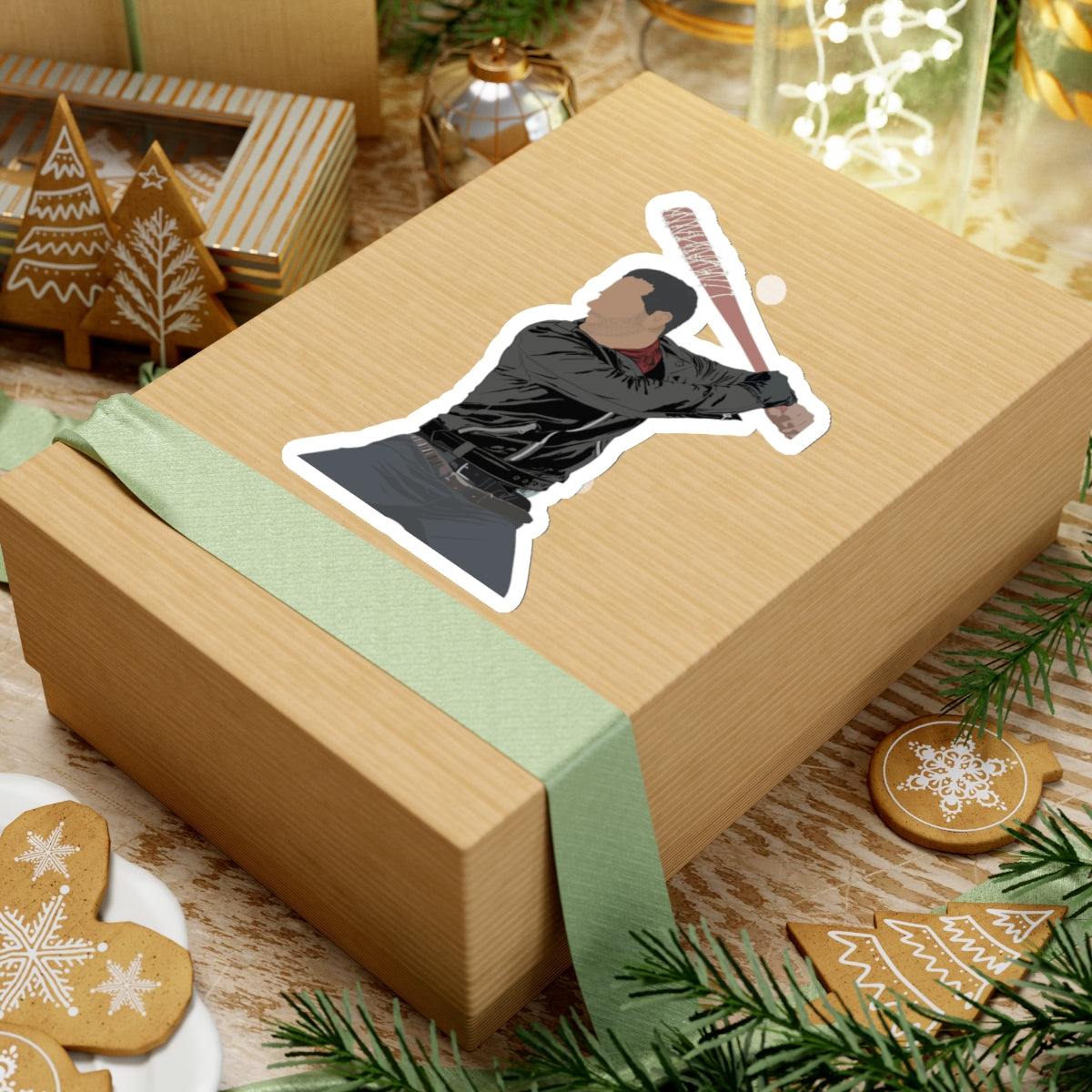 In his hands, he wields a menacing weapon—a bat wrapped tightly with jagged barbed wire. The barbs jut out from the bat, serving as a grim reminder of the danger it poses. The barbed wire is expertly rendered, twisted and entwined along the length of the bat, creating a fearsome weapon that seems to channel the man's inner turmoil and strength.