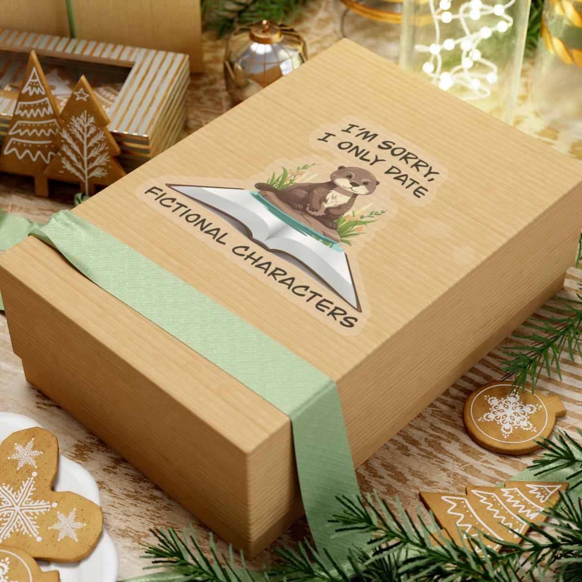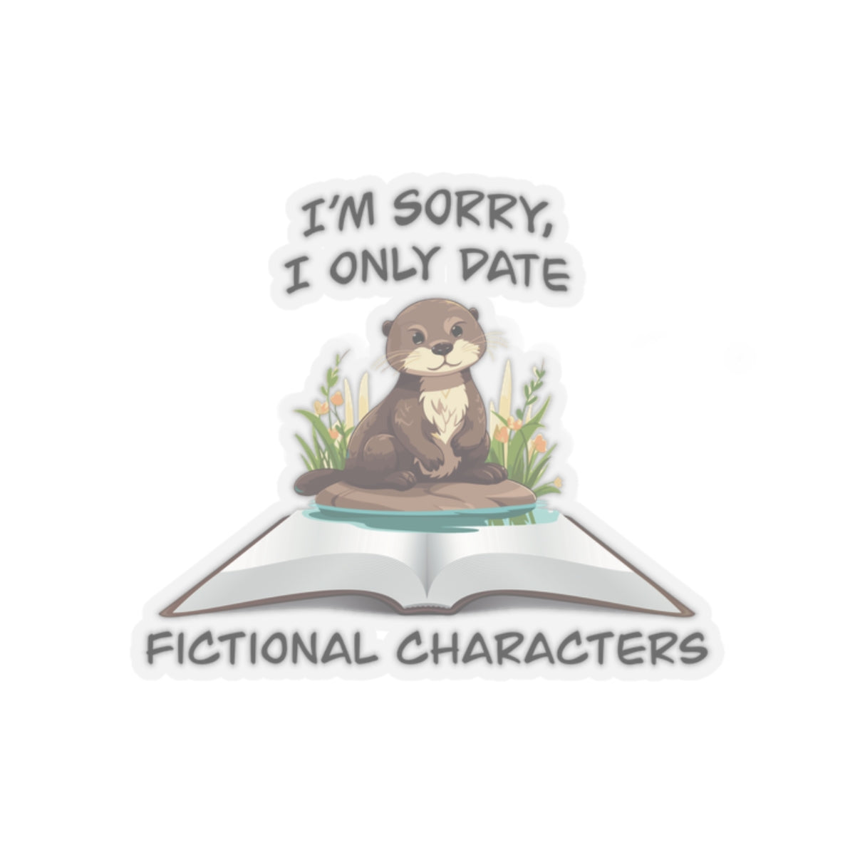 A cute, happy otter sits in the middle of an open book. Above and below are words that read “I’m sorry I only date fictional characters”.