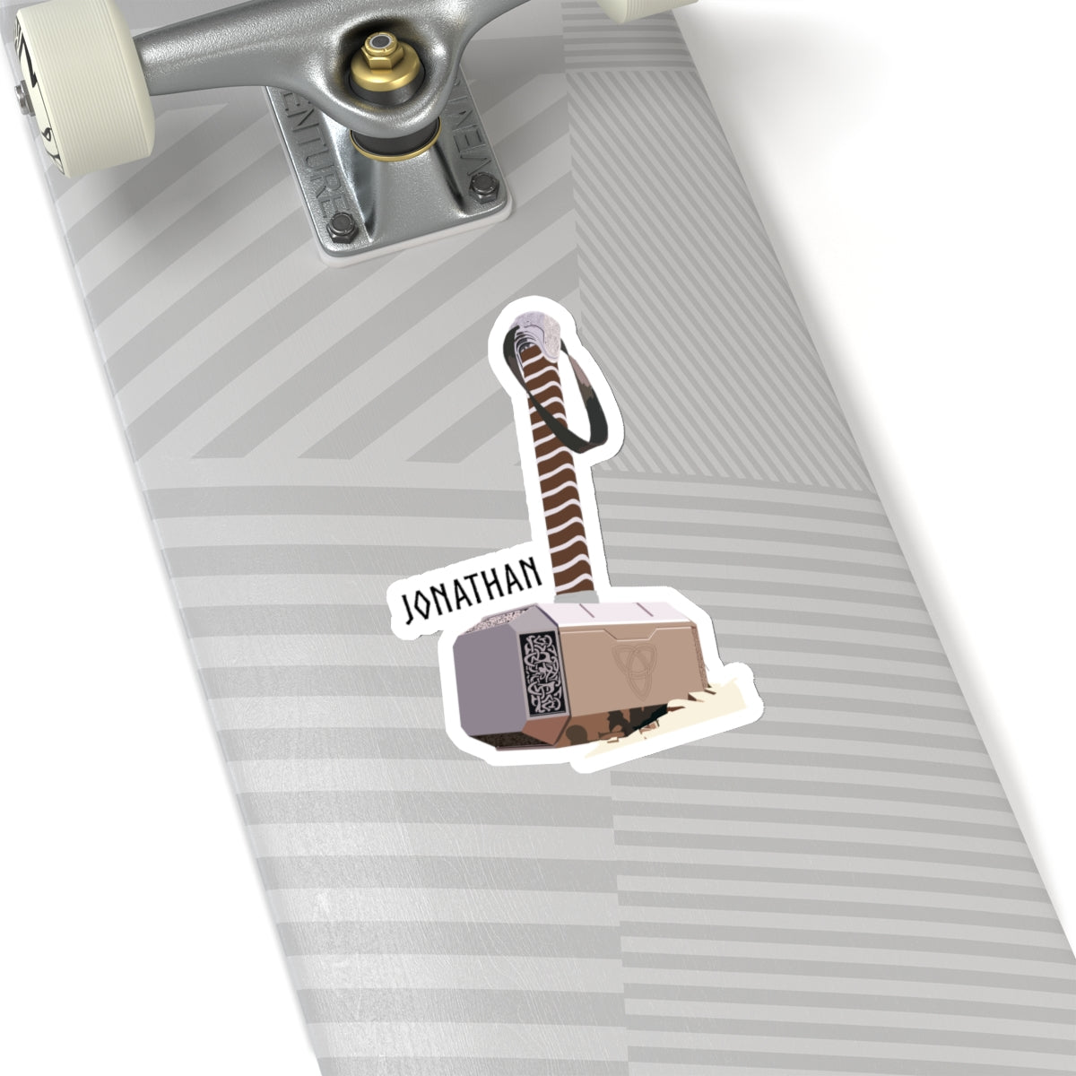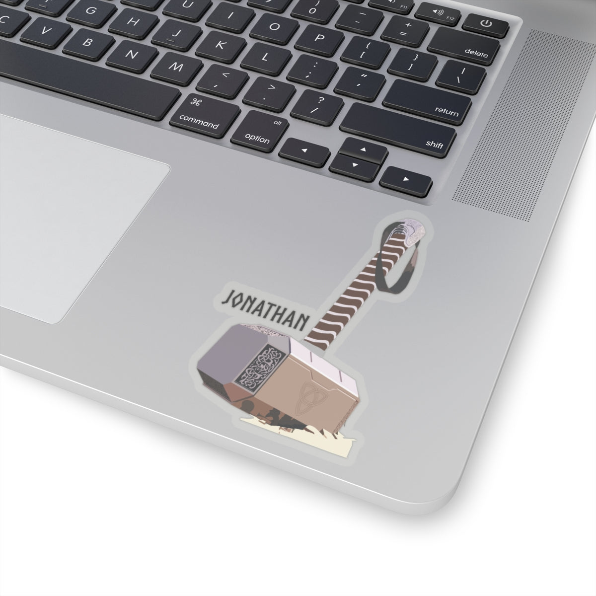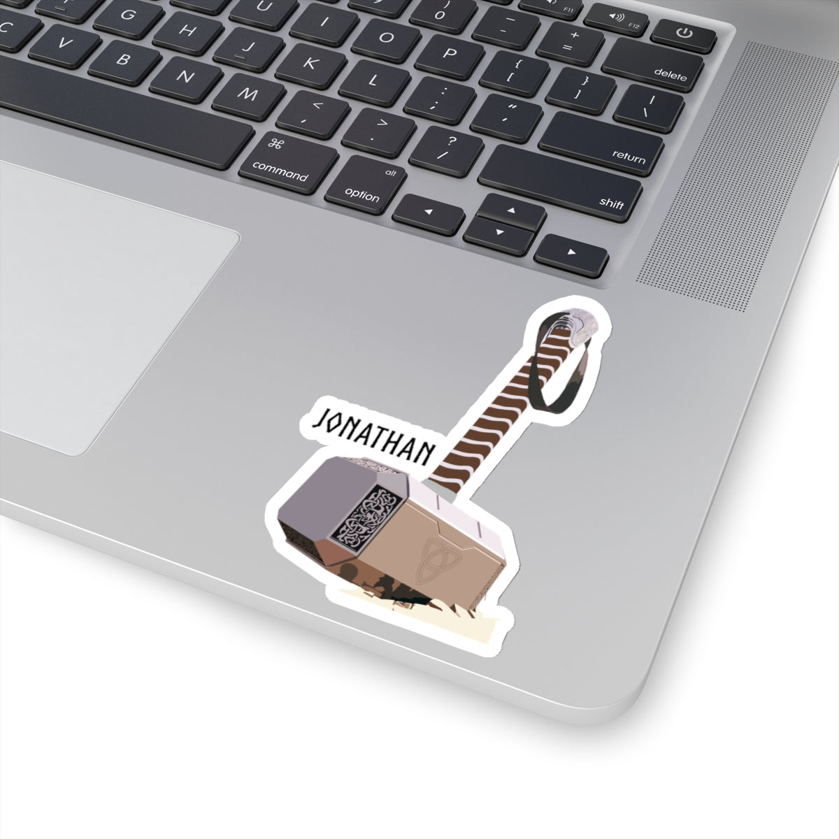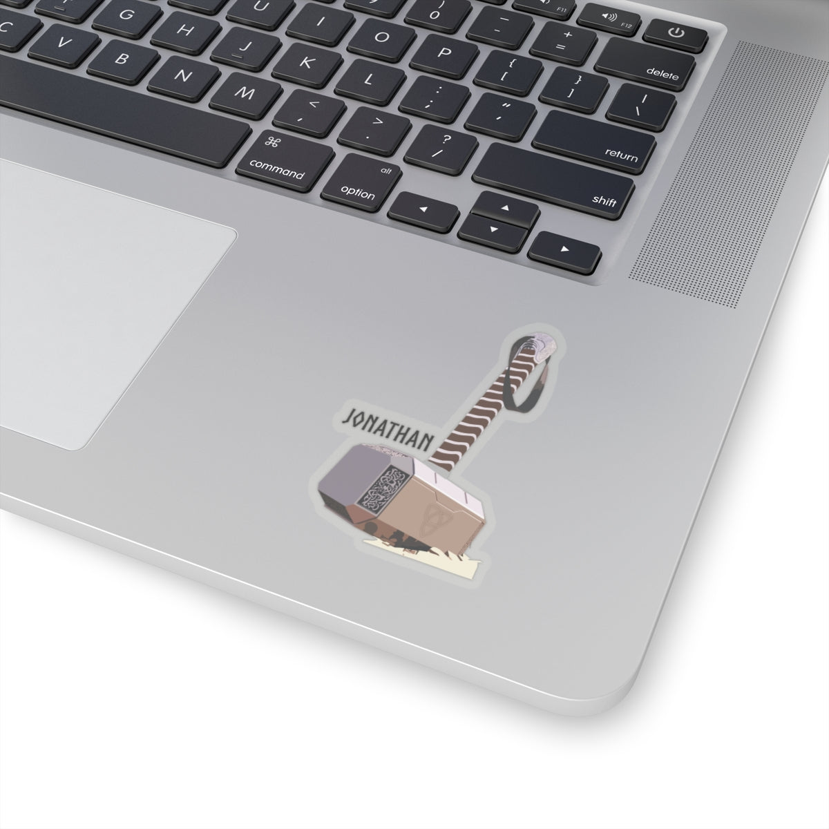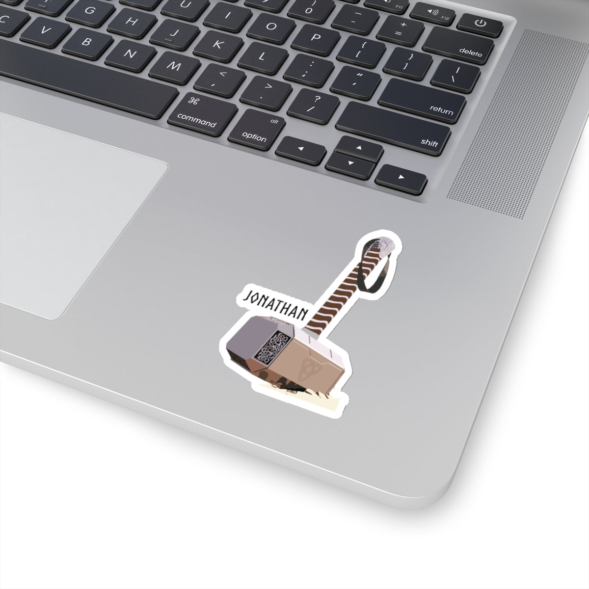 Elevate your sticker collection with our exclusive Thor's Hammer design featuring the iconic Mjolnir accompanied by the name "Jonathan." Inspired by the hilarious reference from Paul Rudd in an interview, this sticker adds a touch of humor to your belongings. Crafted with high-quality vinyl, it's perfect for laptops, water bottles, notebooks, and more.