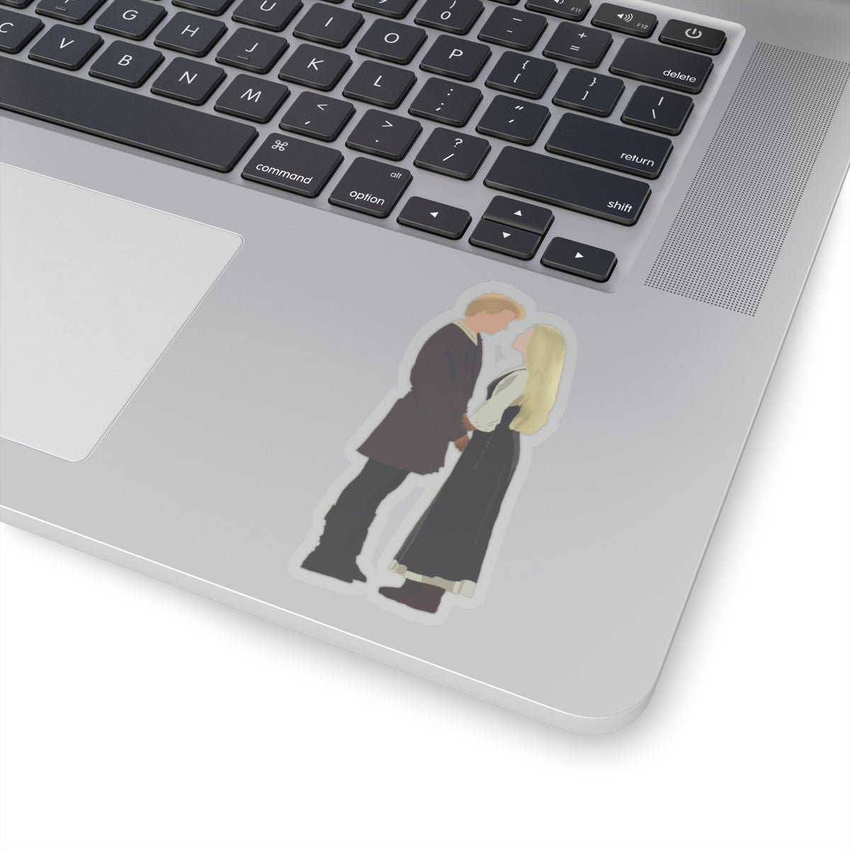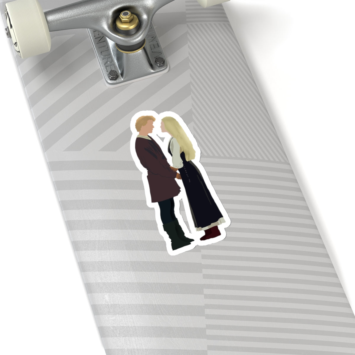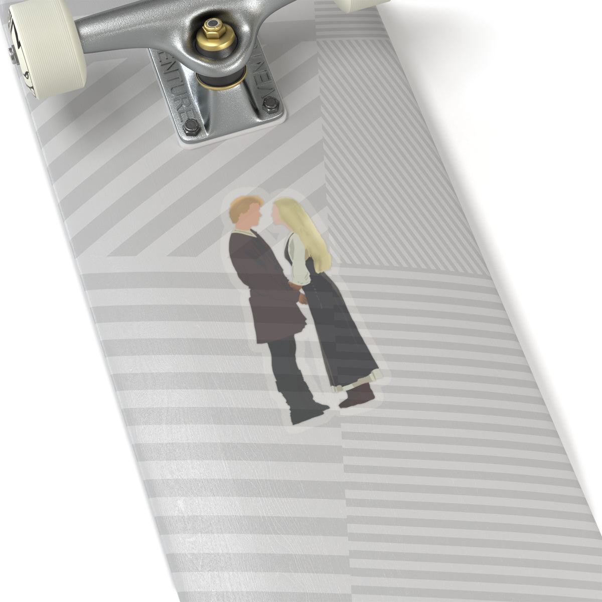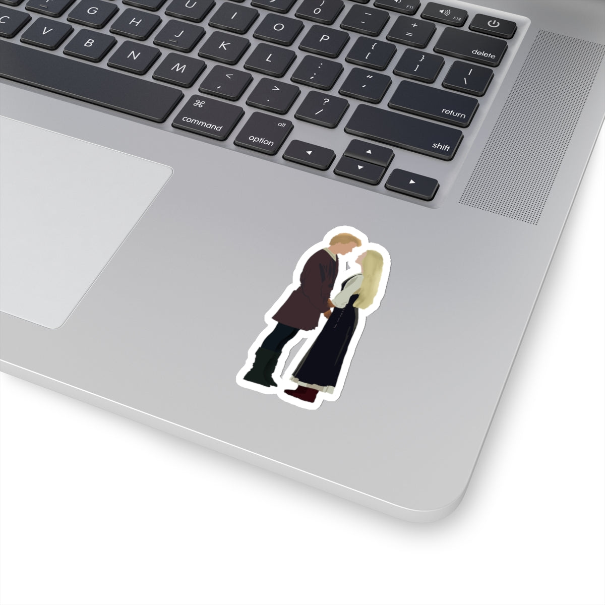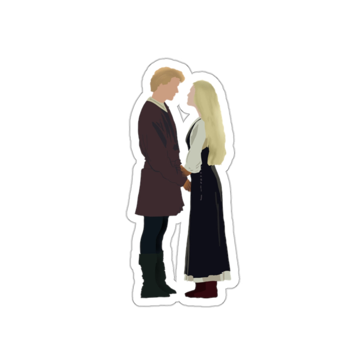 Capture the timeless romance of The Princess Bride with this enchanting sticker featuring Westley and Buttercup locked in a tender embrace, hands intertwined. Crafted with a soft, watercolor aesthetic, this sticker adds a touch of whimsy and nostalgia to any surface it adorns.