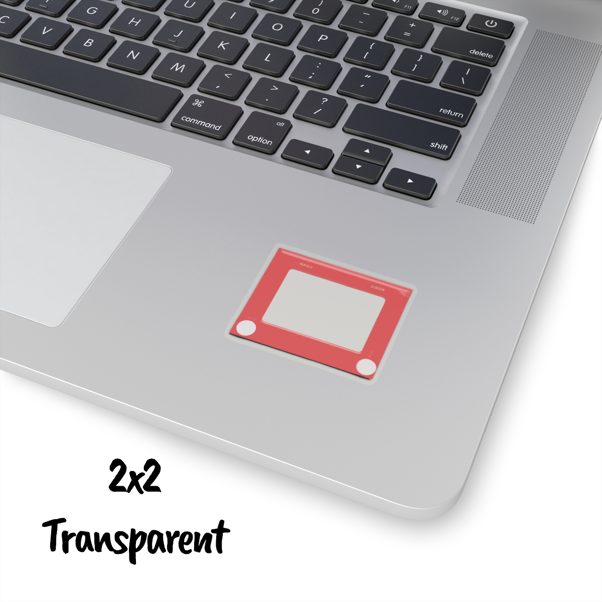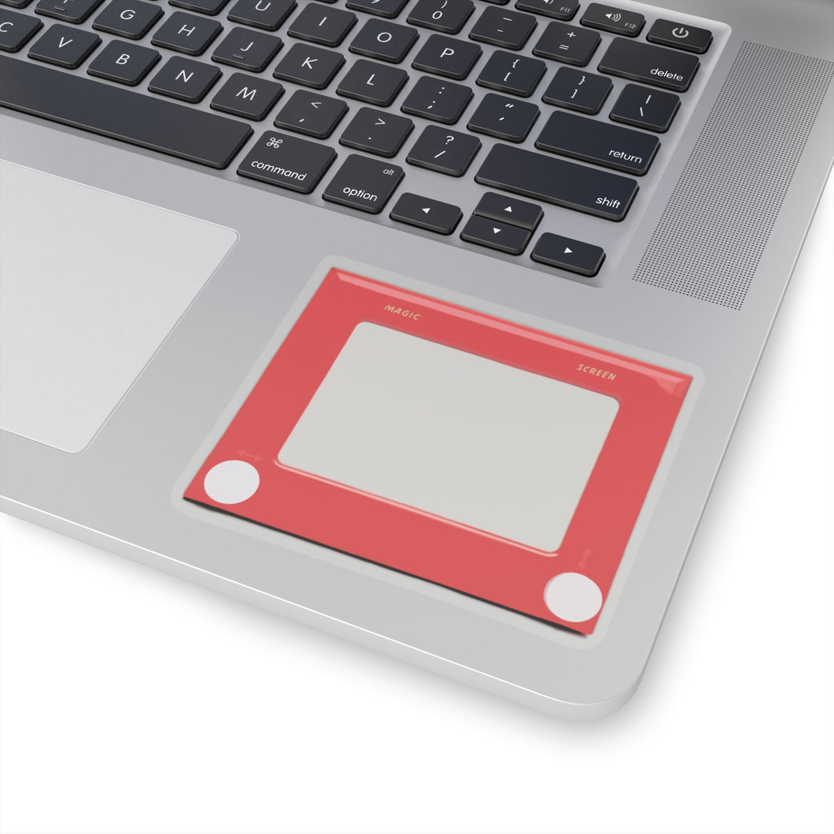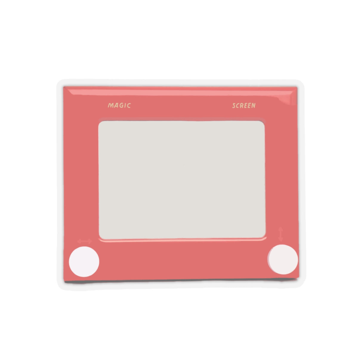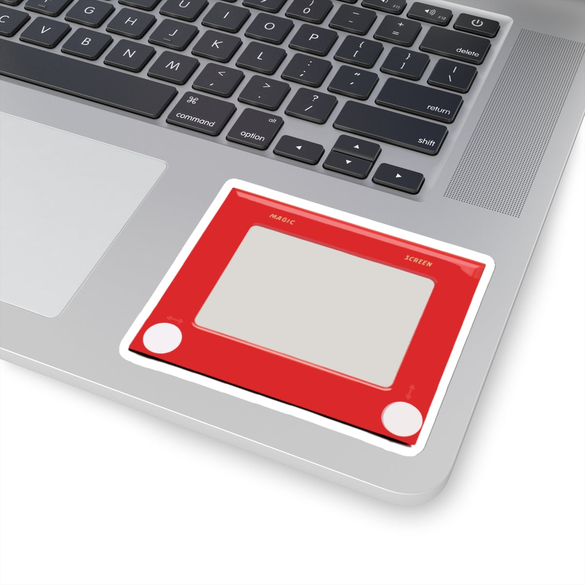 Add a touch of retro charm to your collection with this nostalgic sticker inspired by the classic drawing toy we all loved as kids.