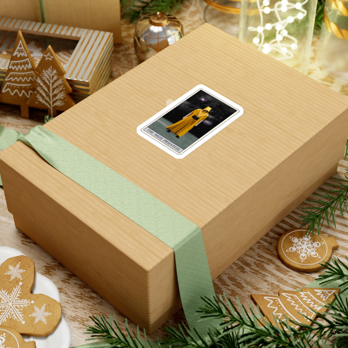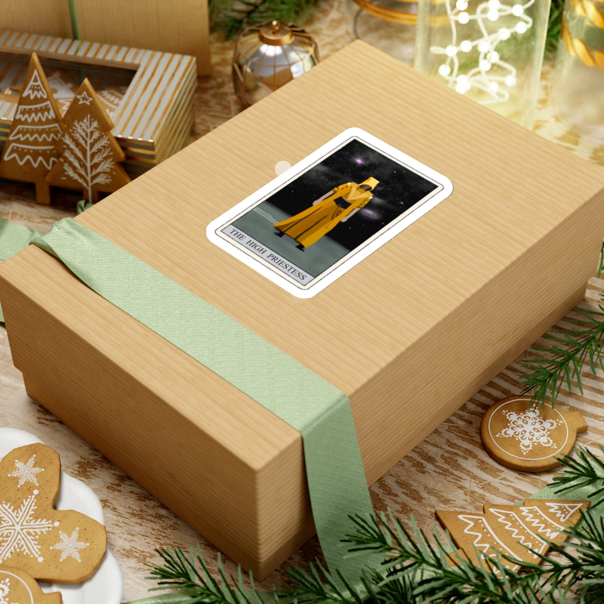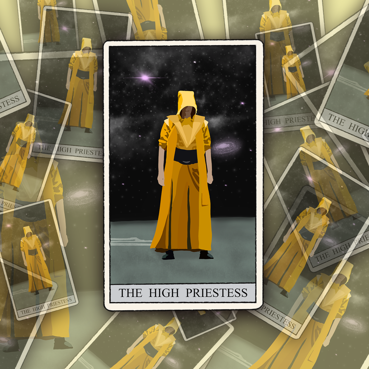 Embrace the mystery and wisdom of the tarot with our beautifully designed High Priestess sticker. Featuring a mystical, ancient figure draped in a flowing yellow robe, set against a mesmerizing starry night sky with visible stars and planets, this sticker is perfect for adding a touch of magic to your personal items.